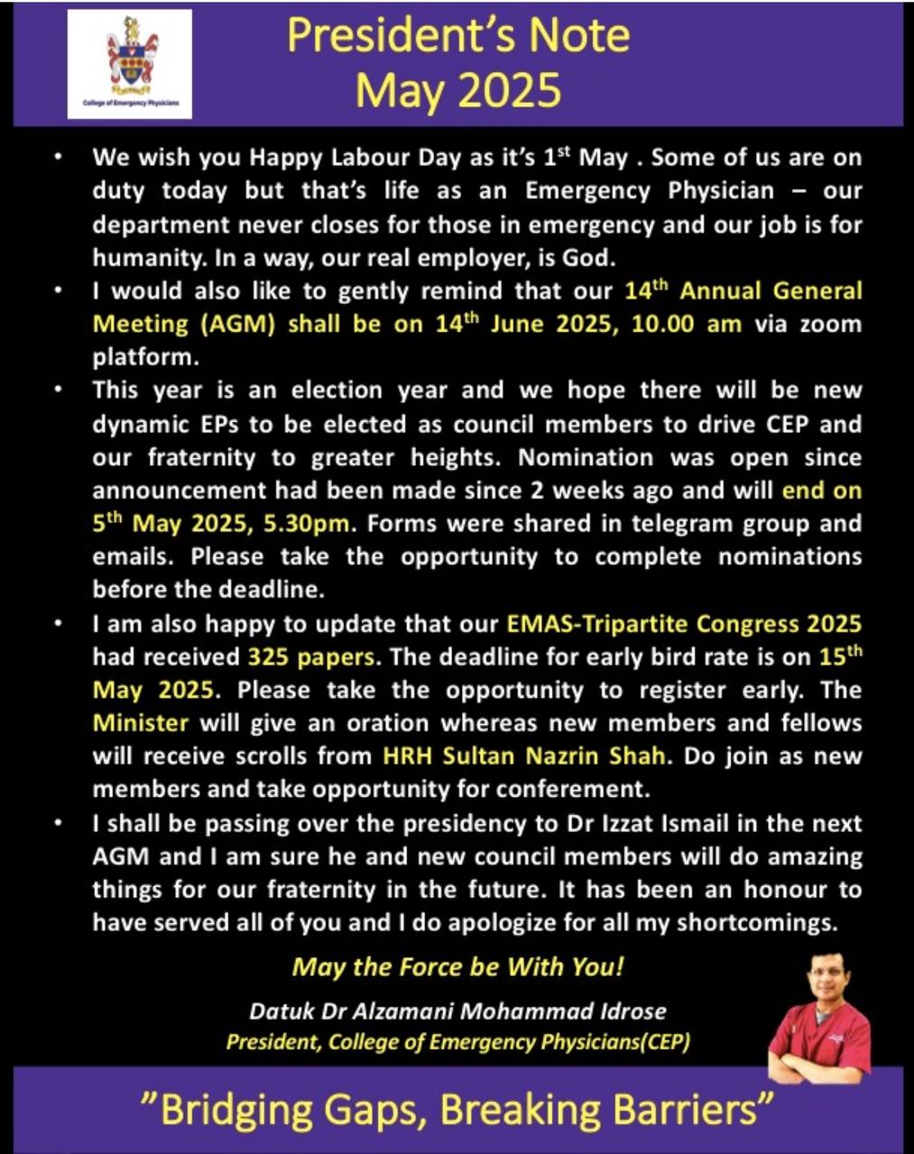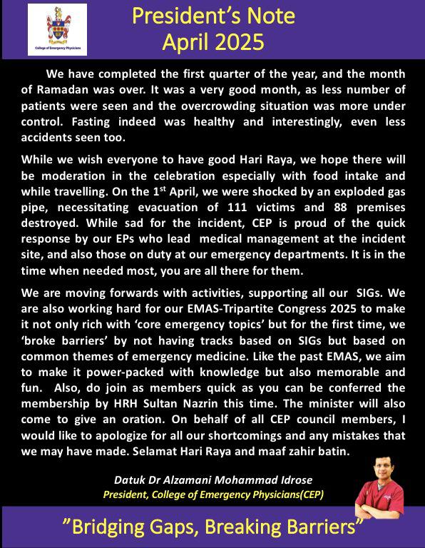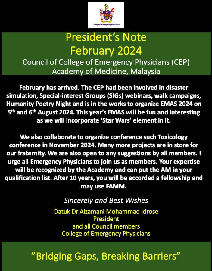 College of Emergency PhysiciansAcademy of Medicine, Malaysia